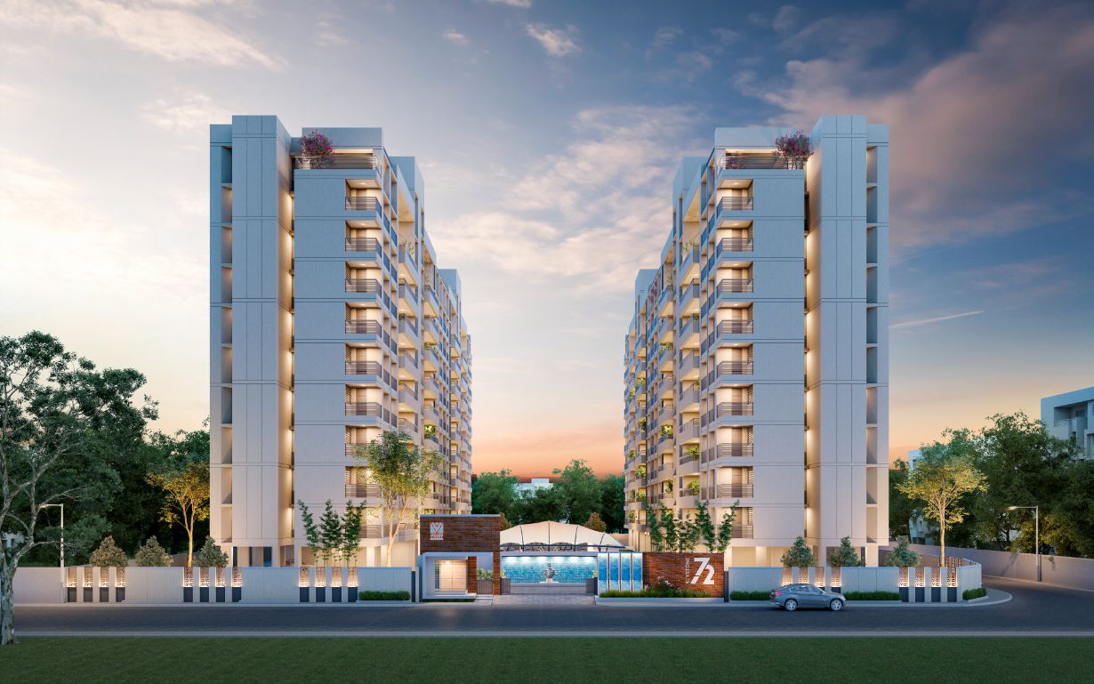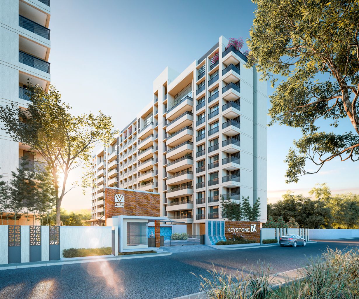 Keystone 72 is an elegant residential development by the renowned Vihav Group, crafted to redefine urban living in Vadodara. Offering a fine selection of 4 & 5 B2HK premium Apartments, Keystone 72 combines modern design with superior functionality. Each apartment is designed for maximum natural light and ventilation, complemented by thoughtfully planned layouts, high-end specifications, and lifestyle amenities. Nestled in a prime neighborhood, it ensures seamless connectivity while providing serene living spaces for modern families.